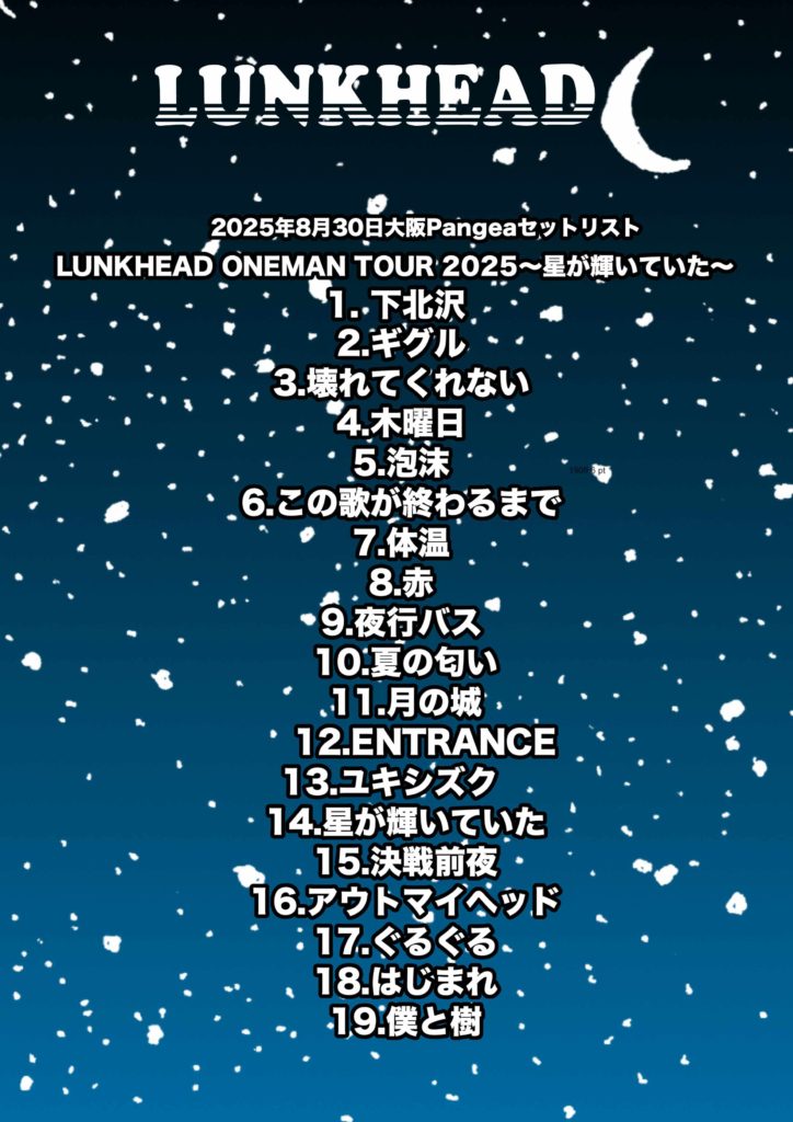 星が輝いていたツアーセミファイナル、大阪Pangea終了!